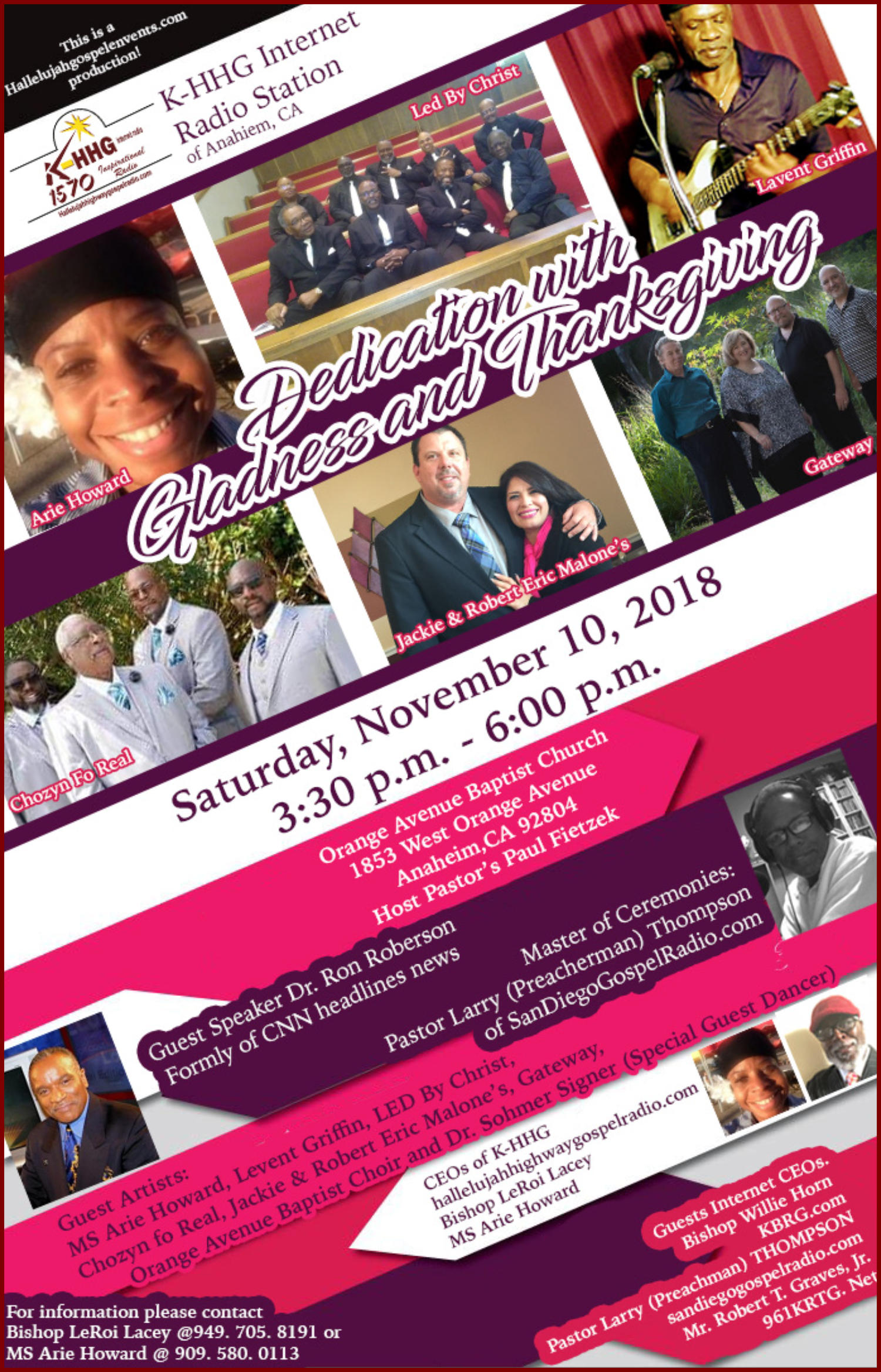 and Refreshments. Come one, come all, join the Gospel Celebration. FREE EVENT but